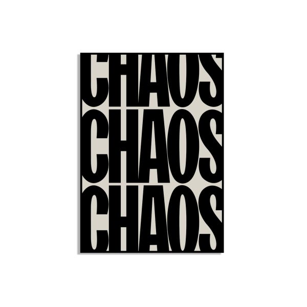 This product contains a single poster only. The Chaos typography wall poster is a bold and modern addition to any interior. The striking black and white design offers a contemporary vibe. Perfect for those who love minimalist decor.