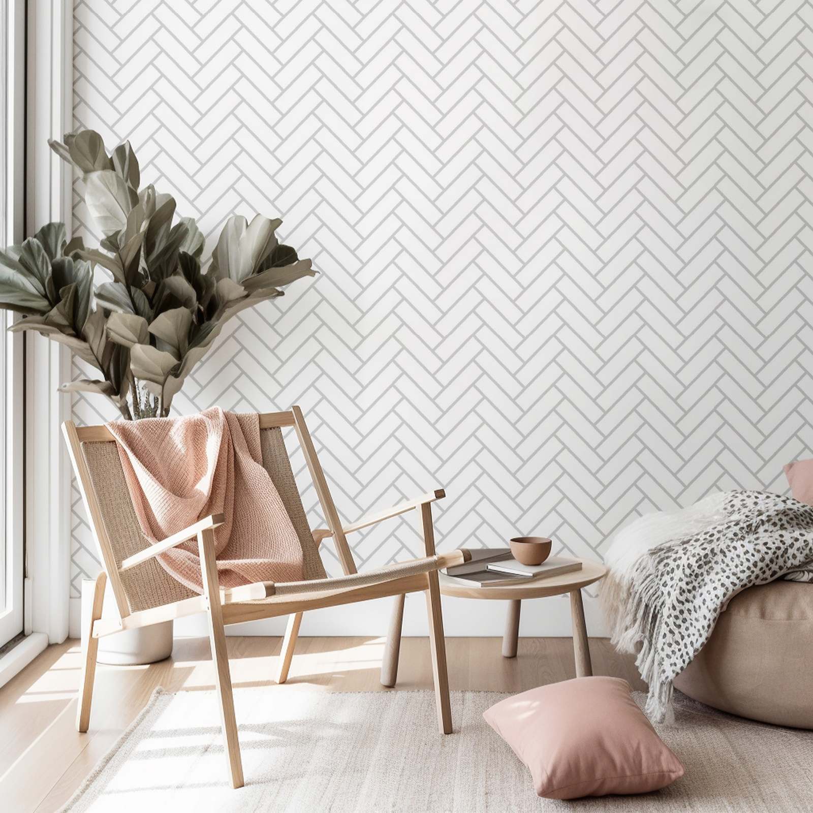 This elegant herringbone wall paper offers a chic and modern design, perfect for enhancing any room. Its soft color palette adds a touch of sophistication to your space. Ideal for living rooms, dining areas, or bathrooms, this wall paper creates a stylish backdrop. This product contains a single wall paper only.