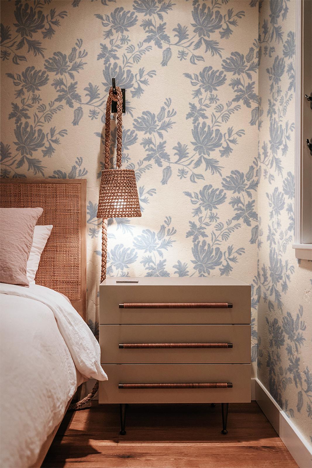 This elegant floral blue wall paper brings a touch of classic charm to any room. The delicate pattern offers a sophisticated backdrop for your decor. Perfect for bedrooms or living spaces, this wall paper creates a serene and stylish atmosphere. Ideal for transforming your interior with ease and elegance.