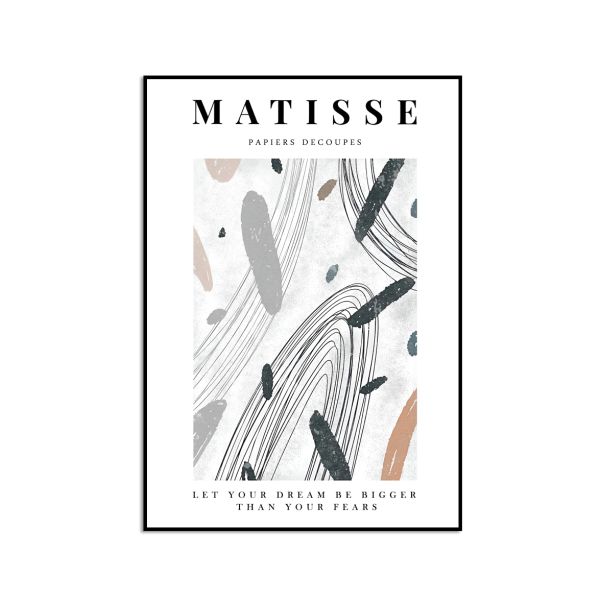 This elegant poster features abstract artwork by the renowned artist Henri Matisse. The text reads: LET YOUR DREAM BE BIGGER THAN YOUR FEARS. Perfect for adding inspiration to any space, this product contains a single poster only.
