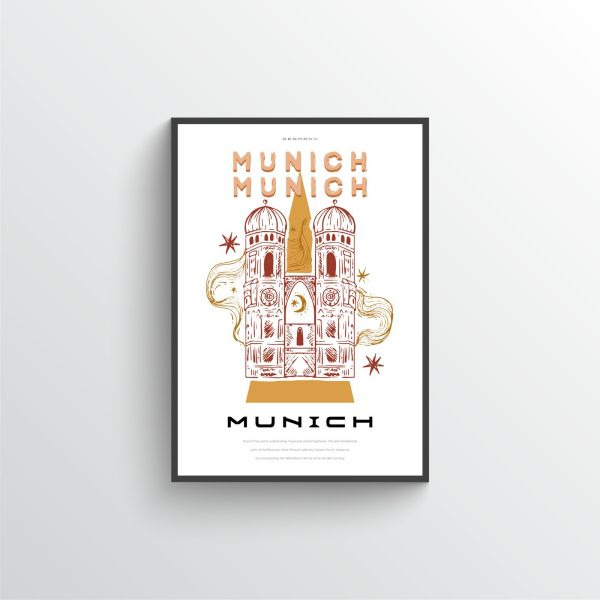 Adorn the walls with this beautifully illustrated poster of Munich, Germany. The Fraunhofer church, one of the famous Munich landmarks, features prominently. This elegant design is great for any room. Prominent text: 'MUNICH GERMANY MUNICH' Product contains a single poster only.