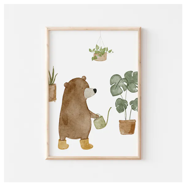 Poster - Bear Watering Plant