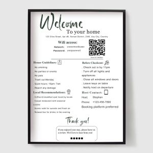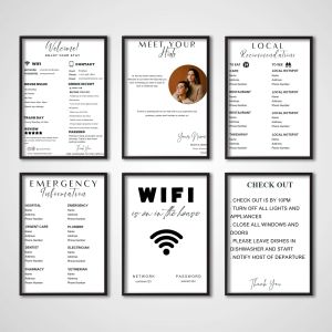 From WiFi signs and house rules to check-in instructions, emergency information, and local recommendations, our posters help you communicate everything your guests need—clearly and beautifully. Perfect for creating a professional, seamless guest experience while elevating your interior.