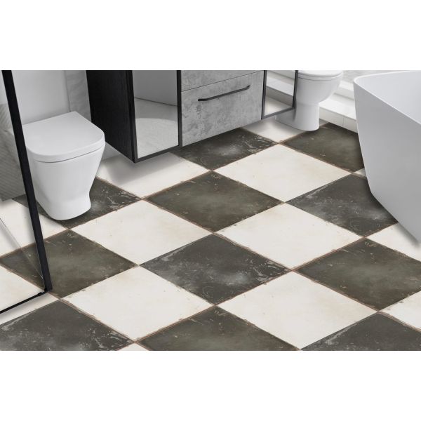 Vintage Style Black and White Floor Tiles / 24 pcs