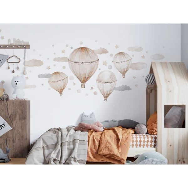 Wallsticker - Biege Pastel Air Balloon with Clouds and Stars