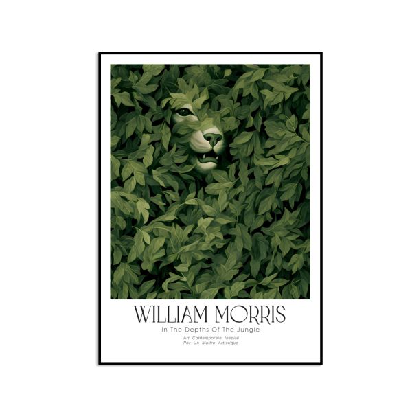 The William Morris 'In The Depths Of The Jungle' poster brings a touch of artistry to any room. Featuring a lush green foliage design that conceals a lion, it is inspired by the famous artist, William Morris. Art contemporain inspiré, par un maître artistique is elegantly inscribed. Perfect for art lovers, this product contains a single poster/canvas only.